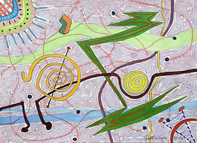 This on line exhibition focuses on works on paper that were produced over the last year and a half. Color has always been extremely important to Scott Wixon, and is one of the defining elements of his work. Over the years he has developed a personal vocabulary of shapes and gestures. The current work is almost exclusively from the artist's imagination. As he puts it: "When I start a new painting, I usually have only a preliminary idea. I start to paint and my structure develops as I go along, reacting to what has come before. When I am painting, I feel confident that I can totally trust my intuition and make the right decisions."